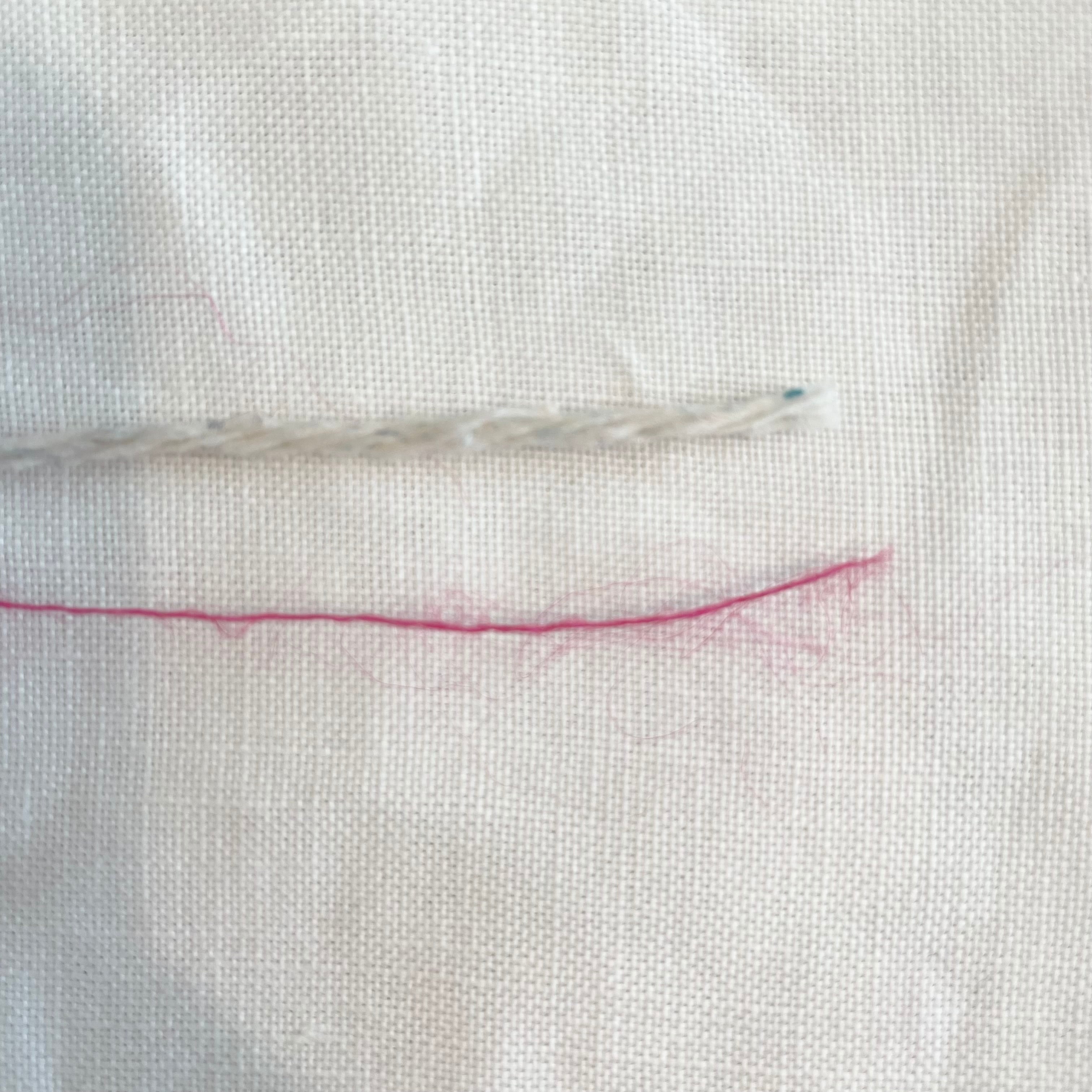 アイボリーベースのネップヤーン、ビビッドピンクのモヘアヤーンの計2本を引き揃えてます♪