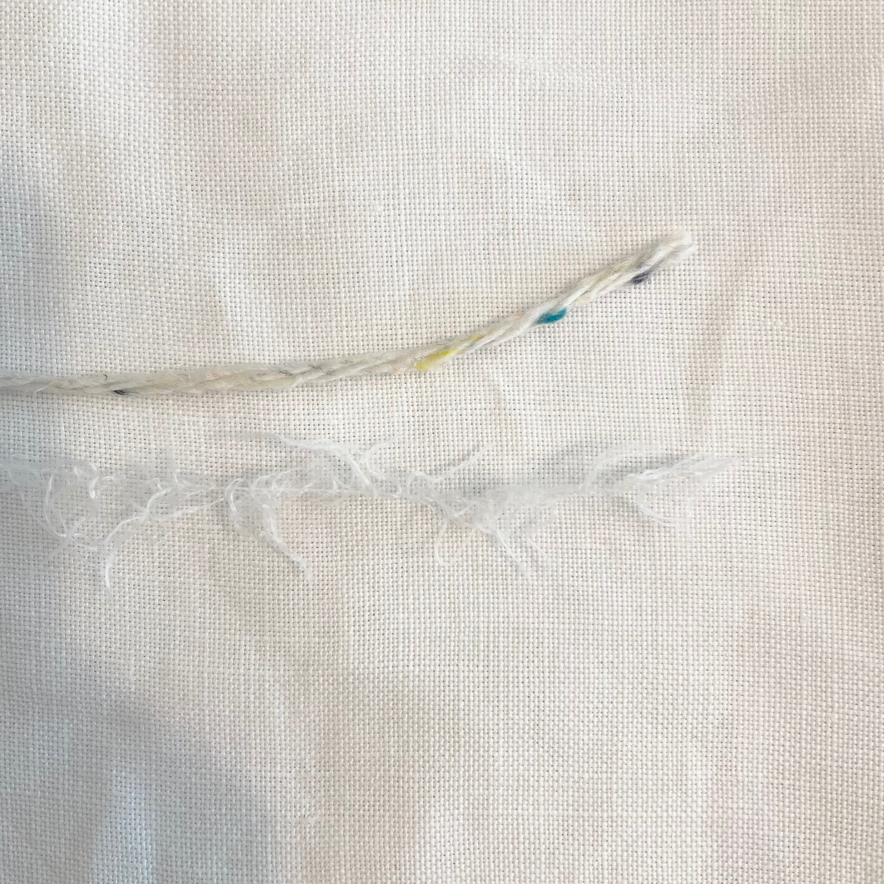 アイボリーのネップヤーン、ホワイトのフェザーヤーンの計2本を引き揃えてます♪